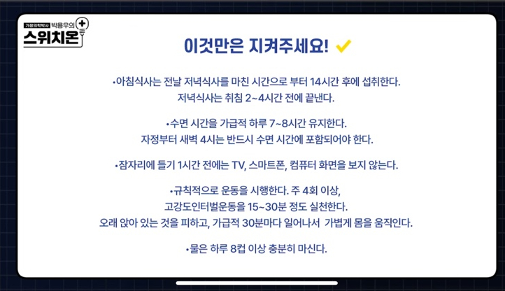 - 12~14시간 공복 유지