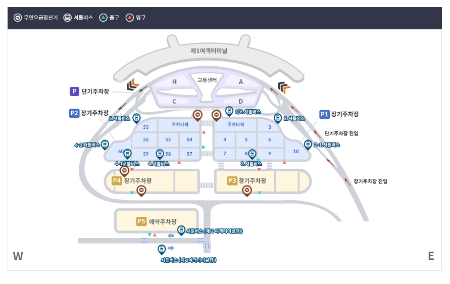 인천공항 제 1여객터미널 장기주차장은 P1~P5이고, 이 중에서 P5만 예약 주차장입니다.대부분 터미널과 가까운 P1과 P2 장기주차장은 만차인 경우가 많기 때문에 빠르게 주차하고 싶은 분들은 P3, P4로 가셔서 셔틀버스를 이용하는 것을 추천드려요.