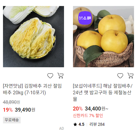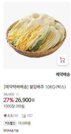 • 특징: 가장 저렴한 가격대와 다양한 김장 재료 패키지 구성 제공