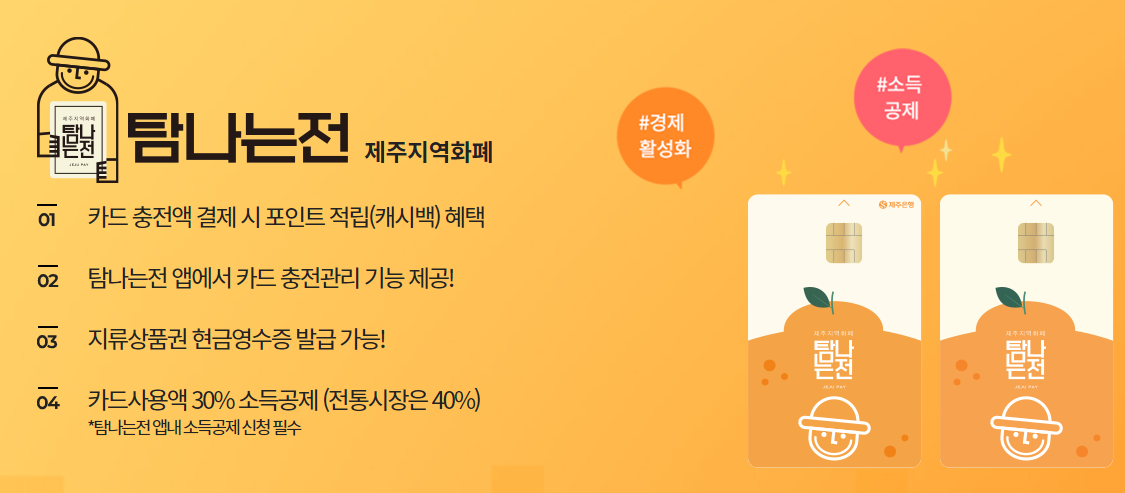 제주여행을 계획하고 계시다면 꼭 '탐나는 전' 제주화폐를 발급받아 여행 기간 동안 활용하시기를 권장합니다.