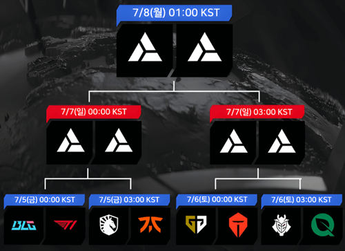 - 7월 7일 일요일 03시00분 : 3조승자 VS 4조승자 결승 (5판 3선승)